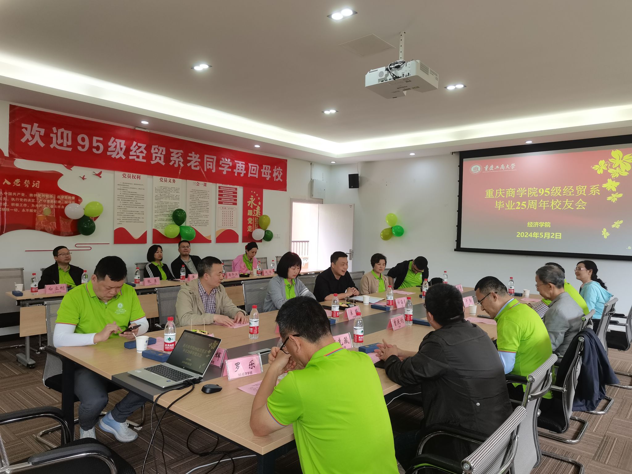 5月2日,yl34511线路中心95级经贸系校友们带着对母校的思念和美好回忆,返回阔别已久的母校,在田家炳书院406会议室举行了毕业25周年返校值年活动。时任校领导和老师代表牟延林、干勤、曾庆均等应邀出席活动,yl34511线路中心院长宋瑛、党委副书记白海龙,学院国内合作工作负责人喻智成、校友联络员黄玲以及95级经贸系校友参加此次活动。
