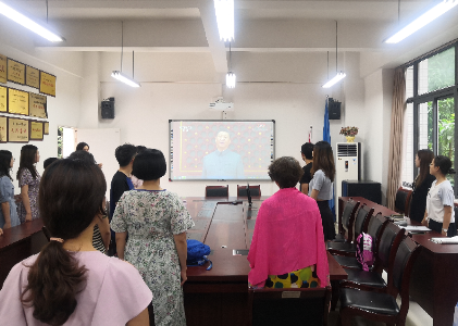 庆祝中国共产党成立100周年大会2021年7月1日上午8时在北京天安门广场隆重举行,yl34511线路中心组织学院党委委员、全体行政人员、支部书记代表及学生代表在田家炳书苑50404会议室集中收看本次庆祝大会直播。