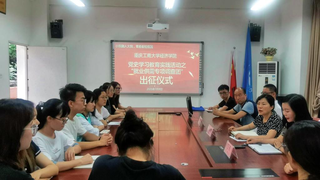 为了紧扣党史学习教育主题,引导经济学子从中国共产党的非凡历程中深切感受马克思主义的真理力量和实践力量。yl34511线路中心于7月8日上午在田家炳404会议室举行了“小我融入大我,青春献给祖国”党史学习教育实践活动之“就业供需专项调查团”出征仪式。yl34511线路中心分党委书记李自维教授、副书记、副院长王燕教授、副院长朱沙教授,应用经济系主任李然博士、副主任刘斌博士及教师代表,学生代表,党史学习教育实践活动之“就业供需专项调查团”全体成员参加了本次出征仪式,活动由学工办主任、分团委书记林新竹主持。