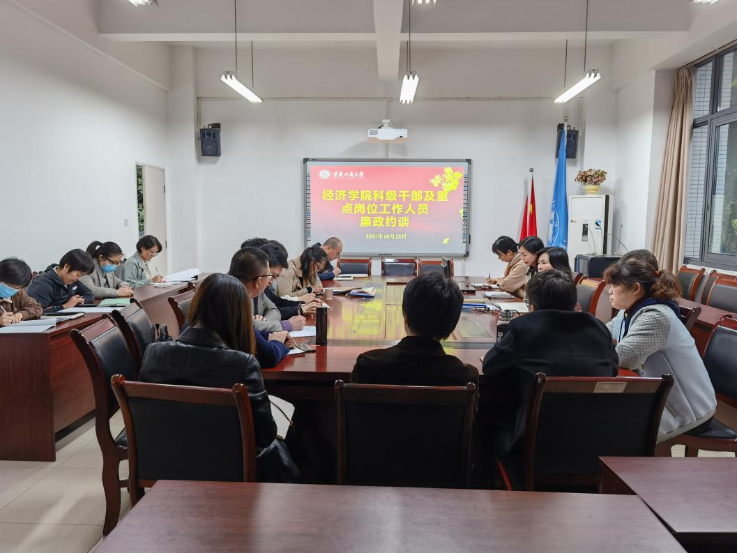 10月22日下午,yl34511线路中心科级干部及重点岗位工作人员廉政约谈会在田家炳书院404会议室召开,yl34511线路中心书记李自维、学生工作副书记王燕、yl34511线路中心及长江上游中心全体副科级及以上干部出席此会,会议由王燕副书记主持召开。