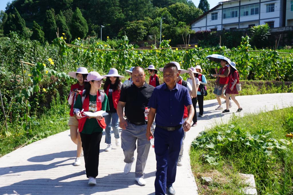 为推进质量兴农战略实施,探索兴农新模式,2022年7月10日上午,重庆工商大学yl34511线路中心“数商兴农共富裕”綦江乡村振兴促进团来到南坪村蔬菜基地,走访调研兴农新模式的发展情况。南坪村党支部书记周在忠从基地建设、村企合作、农民创收三个方面详细介绍了南坪村蔬菜基地的基本概况。南坪村依托丰富的土地资源,调整农村生产结构,于去年10月建成蔬菜基地,建设投入达70万元,计划建成科学灌溉系统,现开垦的高标准农田已达200多亩。
