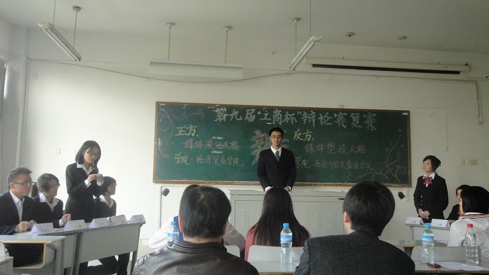 口才之能尽在辩析,智慧之风尽在评论.11月5日下午3点,第九届“工商杯”辩论赛复赛在主校07410教室热烈开辩.本次复赛由校团委主办,由yl官网作为正方与社管学院就“媒体淡化人格”和“媒体塑造人格”展开一场精彩的唇枪舌剑.