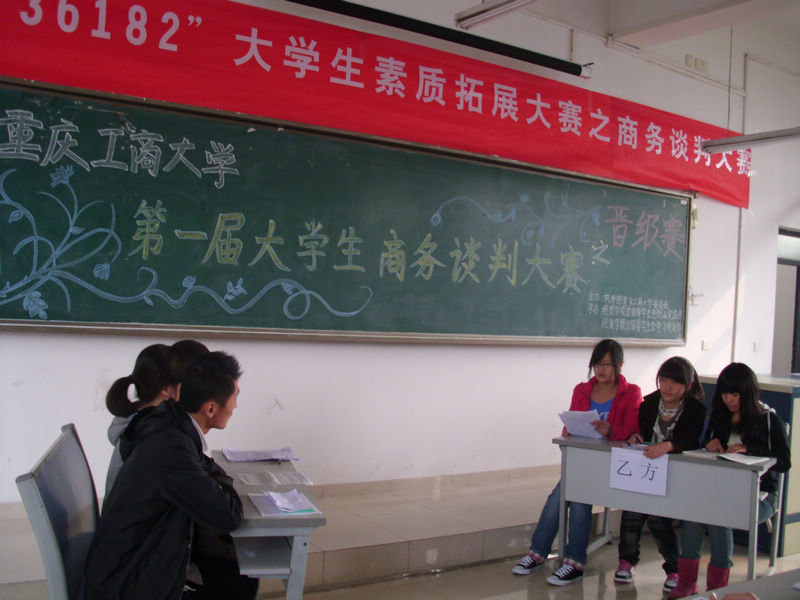 为让yl官网学生更好的了解商务贸易知识,提高专业知识到商务应用的实际操作能力,增强谈判和沟通能力,第八届“36182”大学生素质拓展大赛之重庆工商大学第一届大学生商务谈判大赛之晋级赛于11月26日下午2点在7306教室拉开帷幕。本次大赛由校团委主办,经济贸易学院团委学生会创业实践部、学习科技部承办,旨在通过运用专业知识模拟商务谈判,激发学生实际运用知识的积极性,了解商务谈判的流程,锻炼学生商务实战的能力,从而让学生更好的适应社会的需求。经贸学院黄玲老师、周虹老师以及经贸学院08级贺兰山同学、范娜同学莅临比赛现场,担任评委。
