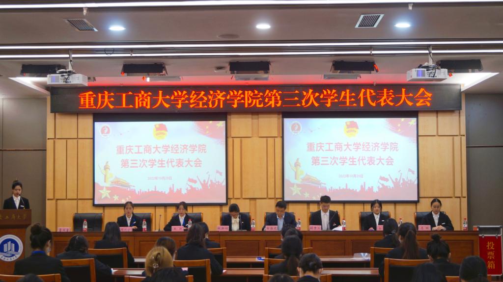 10月29日上午,重庆工商大学yl34511线路中心第三次学生代表大会在南岸校区图书馆第一会议室隆重开幕。yl34511线路中心党委白海龙副书记,yl34511线路中心学工办主任、分团委书记林新竹老师,校学生会主席团成员胡贵三同学、yl34511线路中心新一届主席团成员候选人以及全体学生代表和工作人员等100余人参加了本次大会。