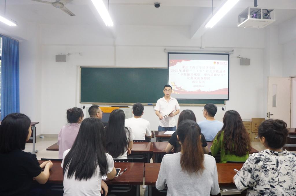 白书记首先介绍了学院社会实践的团队立项情况、主要活动内容及具体工作安排。学院历来重视学生实习实践和综合能力素质提升,今年集中组织60余名学生、8名教师,组建5支国家级、市级及校级“三下乡”社会实践团,统一前往贵州省安顺市塘约村、重庆市奉节县石岗乡、江津区绣庄村、梁平区合兴街道等地,号召全院1000余名学生分散前往祖国各地,围绕乡村振兴、国情观察、红色教育、创新创业、基层治理、志愿支教等主题,开展暑期“三下乡”“返家乡”社会实践。他希望同学们能够珍惜本次实践机会,将理论知识与社会实践课堂相结合,躬身走进基层,实地调研数据,圆满完成实践任务。同时,他对实践团成员提出了三点要求,一是要树立安全意识和团队意识,注意个人安全,互相关心帮助;二是要做好面临艰苦条件的准备,不怕苦不怕累,体现新时代青年的良好品质,三是希望成员们能够积极投身社会实践,结合乡村振兴战略及脱贫攻坚先进发展经验,在社会实践中汲取智慧和力量,有所思、有所悟。