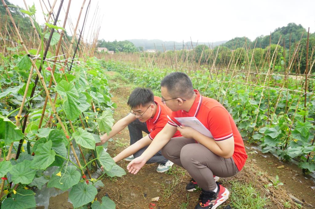 青年是乡村振兴的主力军,要想上好“入门课”,就要走进“田学校”。在农户的介绍下,大家积极了解和学习农作物的种植经验与技术要求,并一同为柿子树下种植的竹荪除草。大山田野里,青年学子同农户一起耕耘,在炎炎烈日下挥洒汗水,用劳动丈量祖国大地,在田地间谱写青春之章。