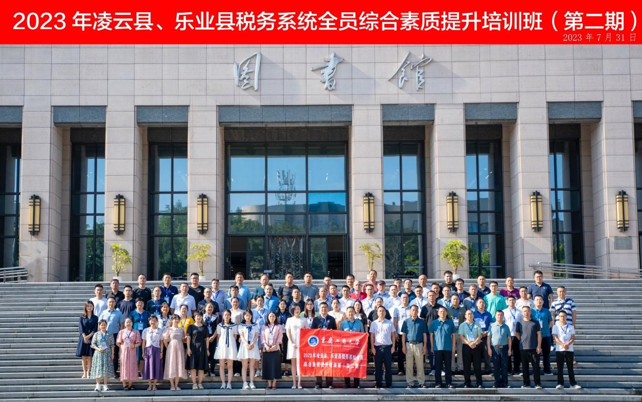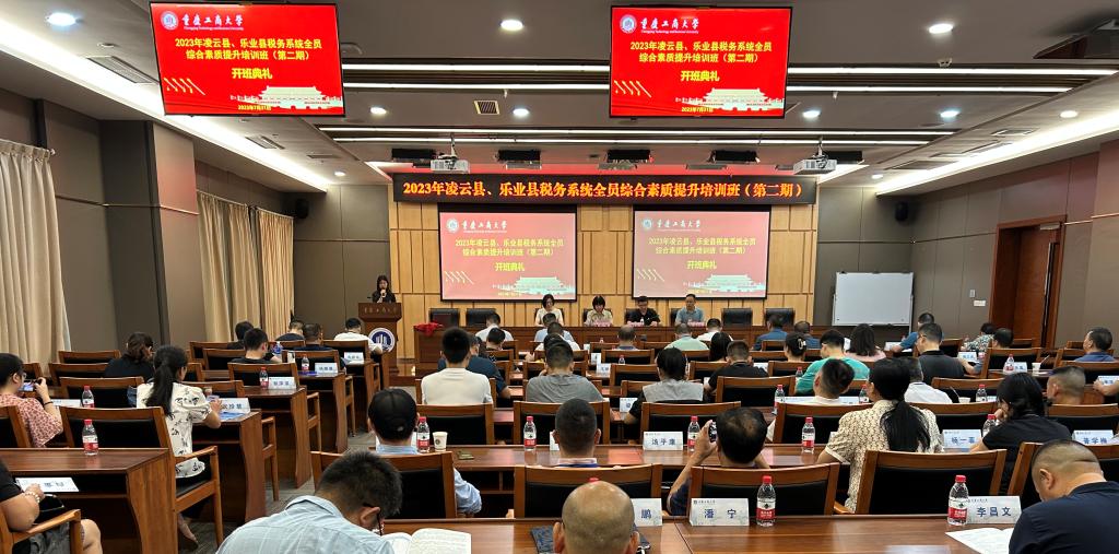 2023年7月31日上午,2023年凌云县、乐业县税务系统全员综合素质提升培训班(第二期)开班典礼在yl官网图书馆会议中心一会议室举行。凌云县税务系统39名及乐业县税务系统38名业务骨干参加此次培训。重庆工商大学yl34511线路中心院长宋瑛、综合办公室主任严艳,凌云县税务局党委书记、局长潘国明、乐业县税务局党委委员、副局长吴世乐出席开班仪式。