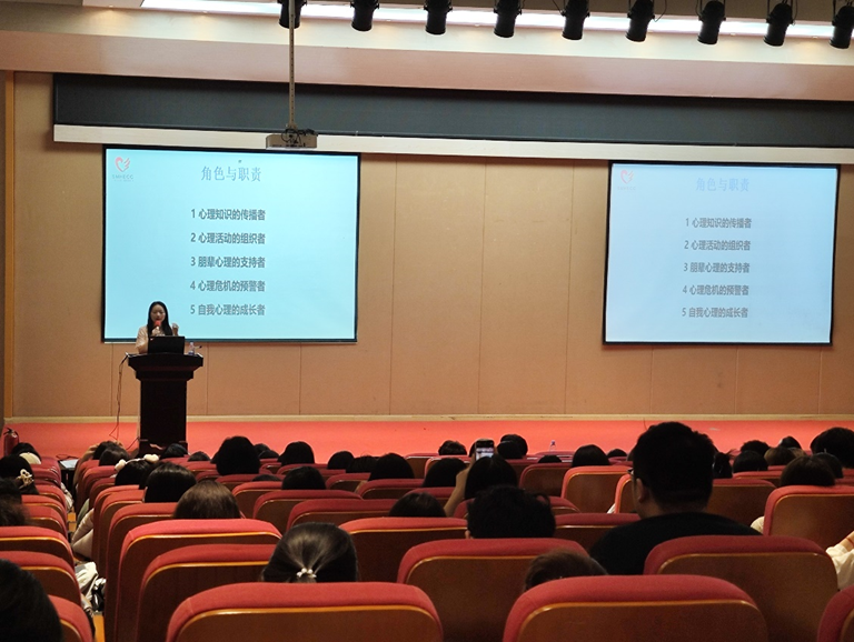 为进一步增强翠湖书院学生社区学生安全意识和心理健康素养,提升社区学生干部安全应急处置能力,2025年9月25日下午,重庆工商大学翠湖书院学生社区在田家炳209报告厅开展安全教育工作培训会,邀请重庆利民消防培训中心张亚康教官、学校大学生心理健康教育与咨询中心张璐老师担任主讲,yl34511线路中心党委书记唐春秋参加活动并讲话,学生社区指导老师刘兰娅主持会议,学生社区心理工作站、楼管会、各班心理委员、寝室长等三百多名学生干部参加培训。