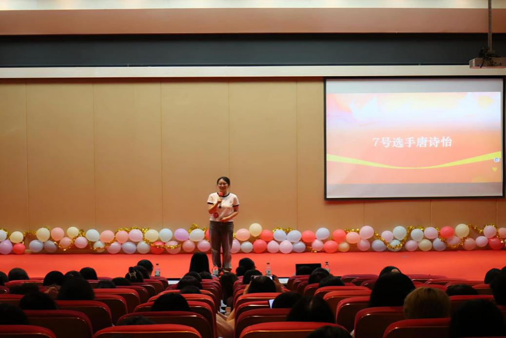 (图为25级财政2班唐诗怡进行题为《以青春为积木,拼凑未来景色》的演讲)