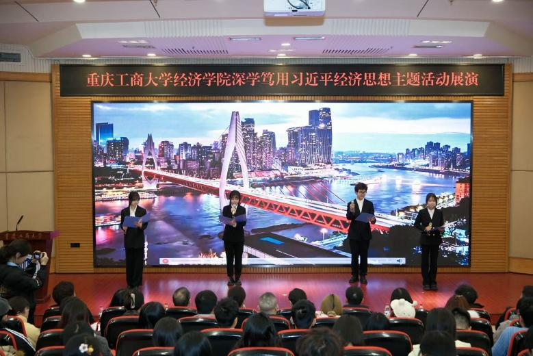 12月4日下午,重庆工商大学yl34511线路中心“深学笃用习近平经济思想”主题活动展演在南岸校区博智楼7200报告厅成功举行。学校党委常委、副校长任毅,党委组织部、学工部等部门领导,学院党建共建联建单位南坪中学、巴南区龙洲湾街道龙锦社区干部、师生与yl34511线路中心师生代表二百余人齐聚现场,共同参与这场集朗诵合唱、理论宣讲与成果展示于一体的思想盛宴。
