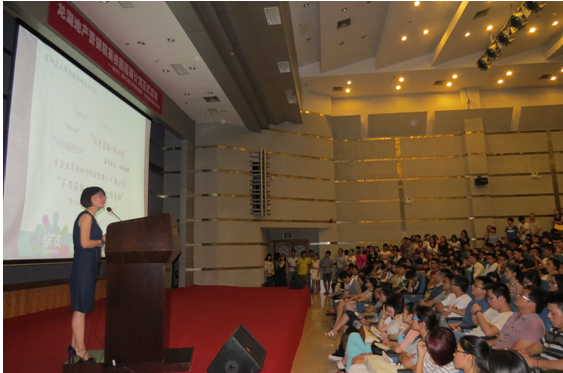 9月24日,济学院分团委和招生就业处共同举办的重庆龙湖地产“绽放”营销精英校园招募计划宣讲会在重庆工商大学主校区博智楼7100学术报告厅隆重召开。重庆龙湖地产人力资源负责人于清源,重庆龙湖地产往届“绽放生”重庆工商大学2013届毕业生毛颖文、方方亮以及学校各学院的2014届应届毕业生均参加了此次宣讲会。宣讲会还吸引了大量对重庆龙湖地产感兴趣的同学到场观看学习。