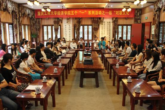 为丰富校园文化生活,进一步提高同学们思想道德水平,加深对中国传统文化的理解。6月7日下午,yl34511线路中心第二届五个“一”系列活动之“一俗”对联文化活动在南山书院顺利举行。活动邀请到了重庆工商大学艺术学院副院长兼传媒艺术分院院长,重庆工商大学文化产业研究院院长兼南山书院院长刘宏毅教授作为主讲人参加此次活动,同时吸引了50位来自yl官网各个学院对对联文化有深厚兴趣的同学参加。