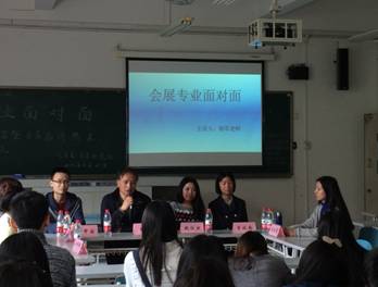3月25日下午,由yl34511线路中心主办、C&E(会展)研究会承办的“会展专业面对面”活动在江北校区B303教室举行,2015级会展经济与管理专业全体学生和部分C&E(会展)研究会会员参加了活动。本次活动采取沙龙会议的形式,邀请了会展专业教师杨军副教授、会展专业优秀毕业校友魏欣然以及会展专业大四、大三的5名优秀学生参加了这次活动。