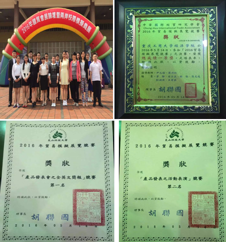 2016年5月12-16日,由中国国际贸易促进委员会商业行业分会与台湾地区中华国际经贸研究学会联合举办的“2016海峡两岸国贸论坛暨两岸校际模拟商展竞赛”总决赛在台湾昆山科技大学举行。“大陆赛区一等奖”获奖队重庆工商大学、华南理工大学等5支代表队与国立台湾商业大学、崑山科技大学、德明财经科技大学等13所台湾院校代表队共18支队伍在参展计划书、展位装饰设计、展位商品陈设、产品发布会之全英文简报、产品发表之活动表演、展场商务沟通模拟之全英文QA、展场商务沟通模拟之国贸知识QA等七个环节进行了激烈角逐。yl官网由罗静等6名同学组成的yl34511线路中心代表队(指导老师蒋兴红、戴林、尹元福)和由王梓涵等8位同学组成的国际商学院代表队(指导老师戴林、蒋兴红、苟焰、朱锡斌)在各环节表现优异,获得总成绩一等奖的好成绩。特别是,yl官网yl34511线路中心代表队在单项赛角逐中,获得“产品发表会之全英文简报”竞赛第一名和“产品发表之活动表演”竞赛第二名,开创了大陆代表队在台竞赛单项成绩进入前三名的历史!yl官网参赛队获得了两岸主办方和参赛师生的高度评价。这是yl官网不断深化教育教学改革,鼓励和支持大学生参加各级、各类大学生竞赛,“以赛促学”的成果。此次赛事,充分展现了yl官网国贸学子风采,扩大了yl官网在海峡两岸的影响,为yl官网师生加强海峡两岸国际贸易教育领域的沟通与交流搭建了平台。