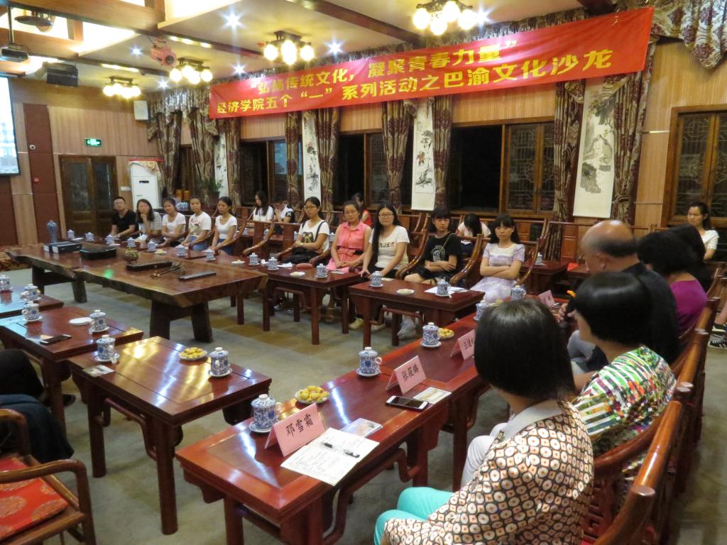 巴渝文化是长江上游地区最富有鲜明个性的民族文化之一,而凝聚了巴渝文化精髓的重庆,以其富有特色的山水文化,盘错纵横的桥都文化,麻辣热烈的美食文化,震撼心灵的红色文化闻名于世。6月 3日,为了宣传弘扬巴渝文化,丰富校园生活,yl34511线路中心以文化探索与交流分享的形式,在yl官网南山书院举办了第三届五个“一”系列活动之巴渝文化沙龙。艺术学院教师、国家一级编剧(曾编写《山城棒棒军》)、二级教授、重庆市作协副主席、国家文化部专家王逸虹教授等嘉宾莅临此次活动。