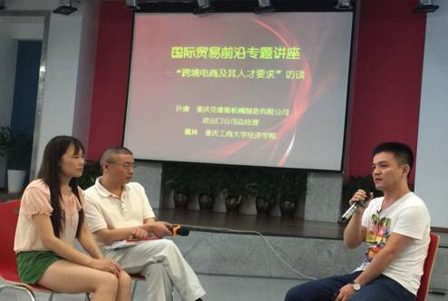 2016年6月16日晚,由yl34511线路中心和国际商学院联合举办的“国际经贸前沿热点专题——跨境电商及其人才要求”访谈在国际商学院407多功能厅举行,来自国际商学院和yl34511线路中心的50余名学生参加了此次活动。该活动由yl34511线路中心国际经济与贸易系组织,戴林、蒋兴红老师主持,邀请了yl34511线路中心校外实践导师——重庆克维斯机械制造有限公司进出口公司总经理叶康先生担任受访嘉宾。