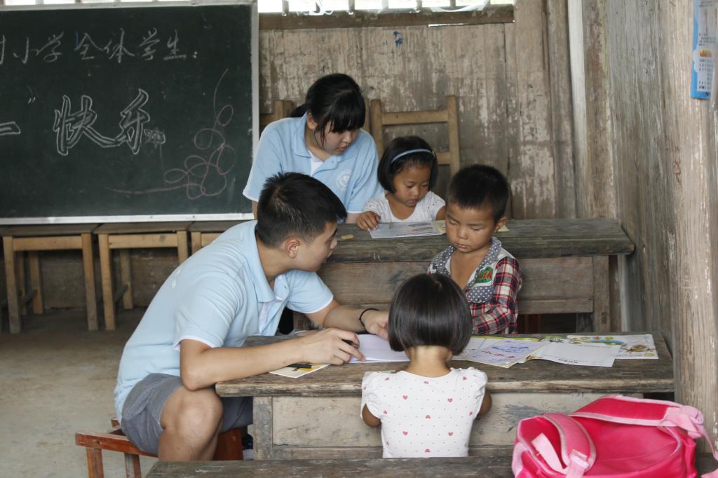 此次活动主要分为三部分。首先,志愿者与孩子们共进午餐,增进彼此了解,同时,志愿者与孩子们进行一对一搭配,通过“爱的抱抱”,“两人三足”等游戏,使孩子们褪却对陌生人的羞涩,与志愿者们之间的谈话也变得更自然顺畅。其次,为了让孩子们在游戏的同时也能够学习到文化知识,志愿者根据孩子的兴趣对孩子们进行一对一作业辅导。除此之外,志愿者们也通过播放动画视频的形式向孩子们讲解关于地震、火灾、水灾以及雷雨天气等方面的安全知识,对孩子们身边存在的安全隐患进行普及。讲解的过程中,孩子们全神贯注。在普及知识讲解后,志愿者们通过随机提问,巩固孩子们的学习成果,现场的气氛显得异常活跃。