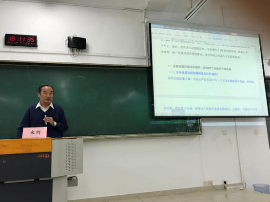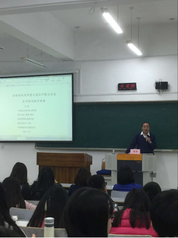 11月24日晚,yl34511线路中心在博智楼07408教室开展“专家学者进本科课堂”系列活动,邀请了中国社会科学院教授、博士生导师,中国社会科学院财经战略研究院学术委员会原副主任,国家哲学社会科学基金项目评审专家,国务院“国家有突出贡献专家”宋则研究员,作了题为《全面深化改革的重大现实问题与对策研究》的学术报告,报告由yl34511线路中心副院长宋瑛主持,yl34511线路中心产业经济学研究生、14级经济学和贸易经济专业学生及部分教师聆听了报告。