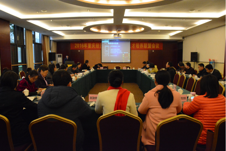 12月10日,重庆经济与贸易类专业人才培养联盟2016年会议在重庆科技学院学术交流中心博学厅召开。报告会由教育部经济与贸易类教指委委员、重庆工商大学科研处处长曾庆均教授主持,重庆市教委高教处副处长吴岚、重庆市社科院科研处处长李敬教授、对外经贸大学杨国亮教授、重庆科技学院教务处处长柏伟教授等领导和专家参会。西南政法大学、重庆交通大学、四川外国语大学、重庆科技学院、重庆理工大学等12所本科院校、部分高职高专院校领导和骨干教师以及高等教育出版社代表参加了会议。yl官网宋瑛副院长、国贸系尹元福主任、蒋兴红老师参加了会议。