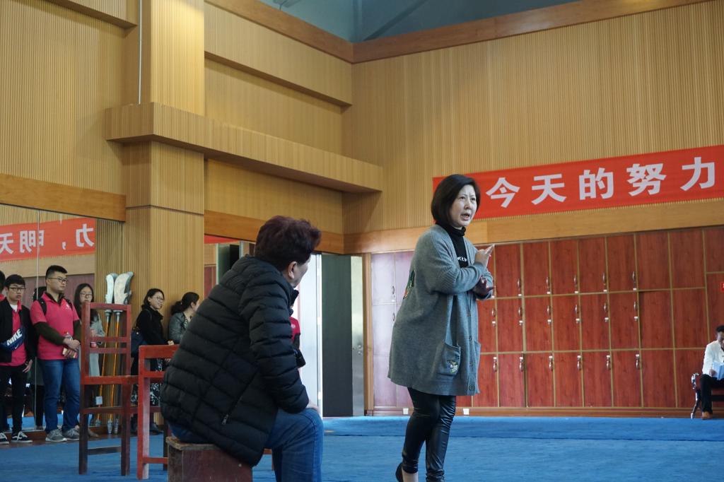 亮堂的唱腔,振聋发聩的锣鼓,把同学们吸引到了二楼排练厅,此时川剧演员们正在排练剧目《葫芦传》。同学们进入排练厅,顿时被精湛的唱腔、形象的演绎震撼,不少同学在观看表演之后,主动和下台休息的演员交流川剧表演细节。