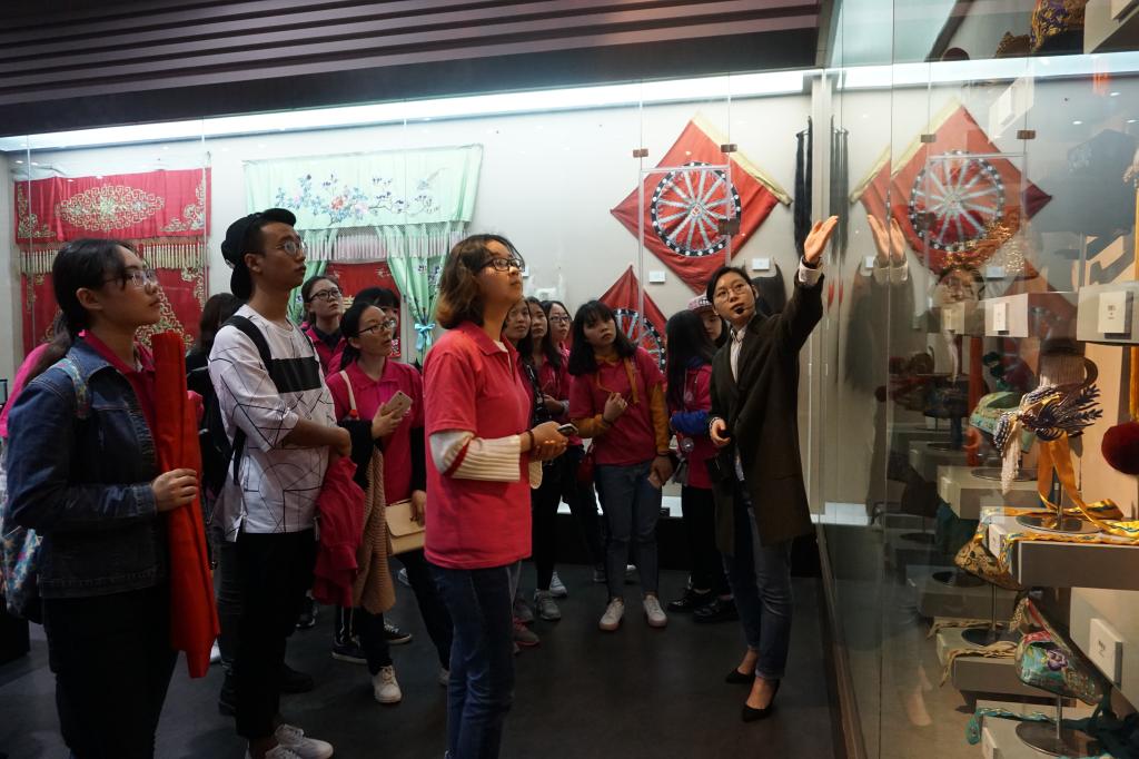 川剧,是中国传统戏曲剧种之一,流行于四川东中部、重庆及贵州、云南部分地区。2006年5月20日,川剧经国务院批准列入第一批国家级非物质文化遗产名录。为了让大家对川剧有更深入的了解,本次活动首先安排专业讲解员带领同学们参观川剧院博物馆的4个展厅。专业讲解员从川剧的起源、行头、脸谱、发展等方面向同学们系统的介绍川剧相关知识,同学们被形式各样的脸谱和华贵异常的戏服吸引,当得知戏服上的金色绣图为黄金打造的金线绣制,同学们更是赞叹连连。讲解员娓娓道来的述说,让同学们听得入迷,纷纷感叹“涨知识”了。