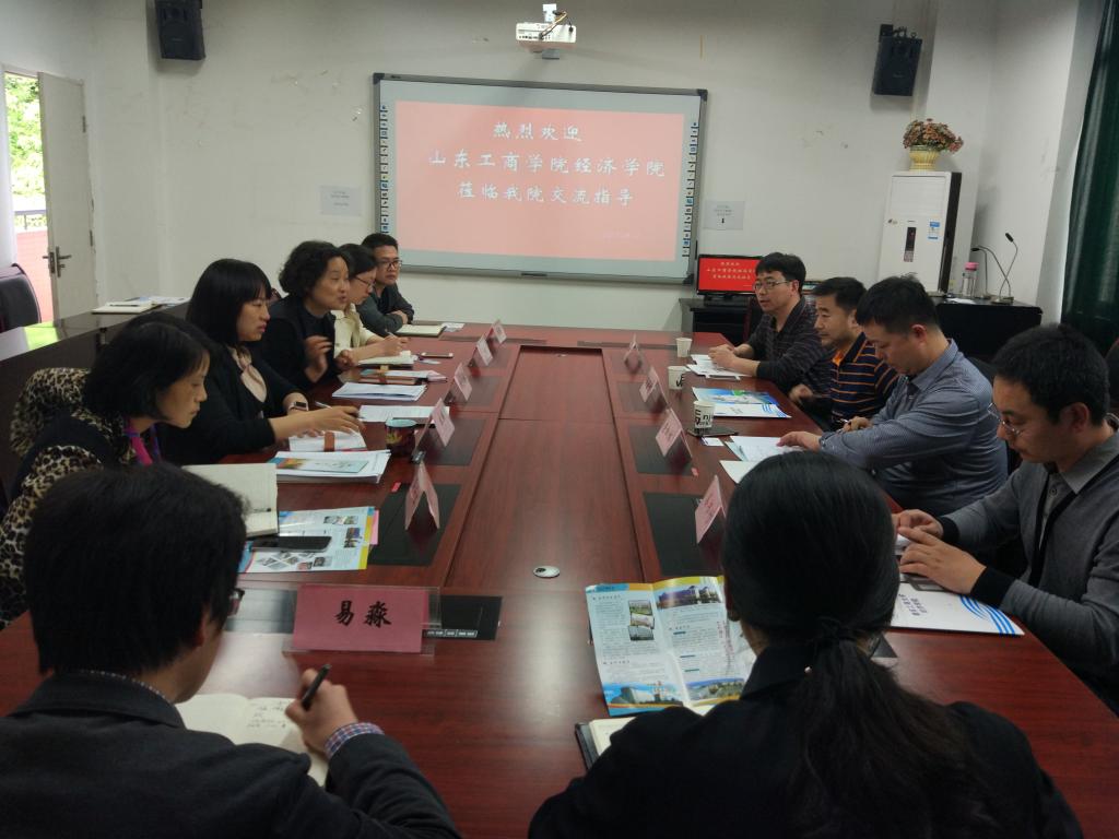 4月12日下午,山东工商学院yl34511线路中心党总支书记马金智、主管教学副院长唐松林一行人来yl官网调研交流。yl官网分党委书记王小玲、副书记于频、主管教学副院长宋瑛、经济系主任、国际经济与贸易系主任以及教务办全体人员参加了会议。会议由王小玲书记主持。