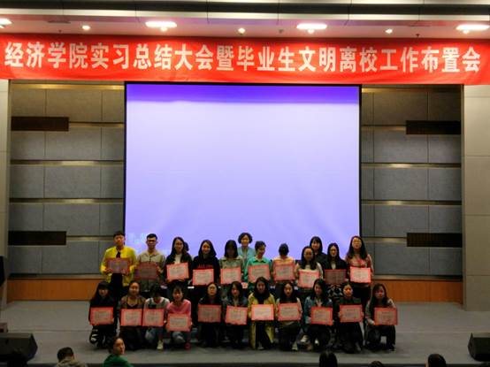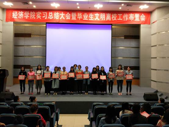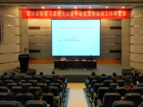会上,于频副书记宣布大会开始后,首先全体起立齐唱重庆工商大学校歌。而后,由宋瑛副院长总结了本届毕业生实习情况,指出本届毕业生总体实习过程整体情况良好,学生实习范围广,实习行业主要集中于服务行业,绝大部分同学都按时保质地提交了实习回函以及毕业实习手册,当然,也指出了少部分同学的实习存在趋于形式化,走过场,态度不端正等现象。同时,宋瑛副院长向在座各位毕业生提醒了2017年5月6日毕业论文答辩的几点注意事项,从答辩前准备到答辩结束论文再次修改完善,同学们都要态度端正,从容应对。