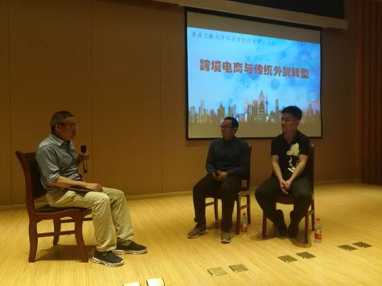 2017年5月15日和16日晚,yl34511线路中心和国际商学院国际经济与贸易专业本学期的经贸热点专题讲座进入第11场,主题为“跨境电商与传统外贸转型”。专题讲座采取了访谈式讲座的形式,邀请了yl34511线路中心教学实践基地企业高管——跨境电商知名平台阿里巴巴重庆公司总经理孙海燕女士、片区经理卢明光先生,大龙网渠道通运营总监徐钧先生,以及多年从事跨境电商出口的重庆克维斯机械制造有限公司进出口公司总经理叶康先生等参与教学活动,共话传统外贸的转型和跨境电商的未来。本次专题讲座在田家炳书院209会议室举行。yl34511线路中心国际经贸专业2014级和国际商学院国际经贸专业2014级、2015级近200名学生听取了讲座。