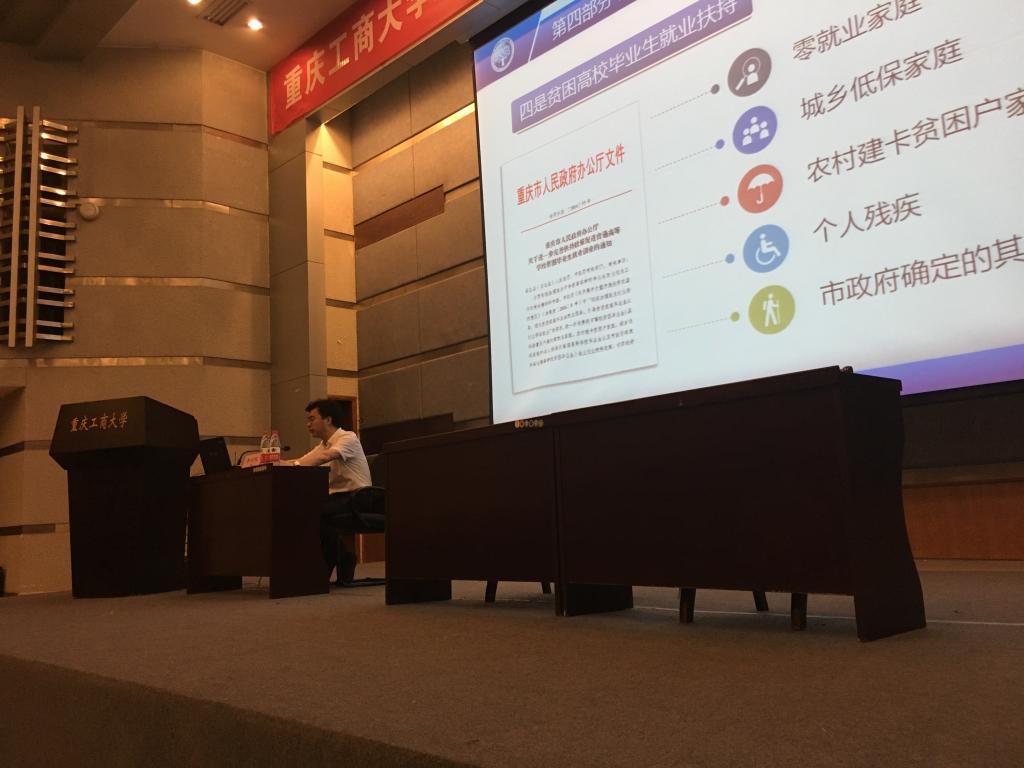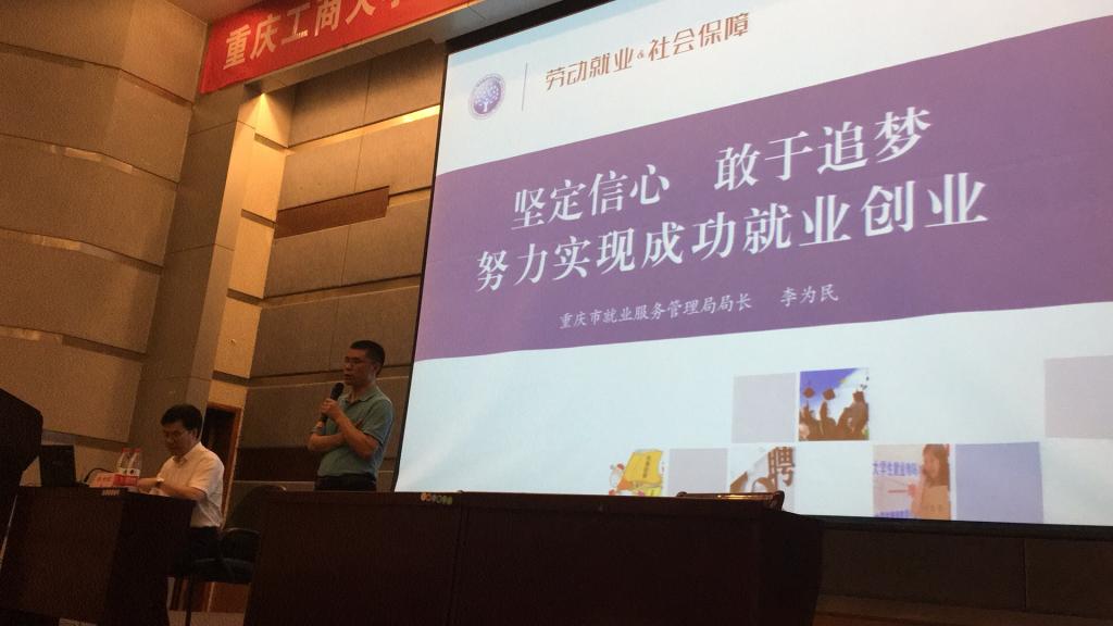 随后,李为民局长围绕“坚定信心、敢于追梦,努力实现成功就业创业”主题作了精彩分享,他通过详实的数据为同学们分析了2017年我市大学生面临的就业形势,用积极向好的就业基本面没有改变来增强大学生积极就业的信心,同时从大学生应掌握的就业技巧,就业路径以及重庆市对大学生在就业创业方面的优惠政策进行了详细解读,对政府在大学生就业创业方面提供的全方位服务进行了图文并茂的生动阐述,让与会同学受益匪浅。讲座后同学们踊跃提问,李为民局长就学生们提出的公务员考核标准,考生应具备的基本素质以及创业如何贷款等问题进行了详细解答。