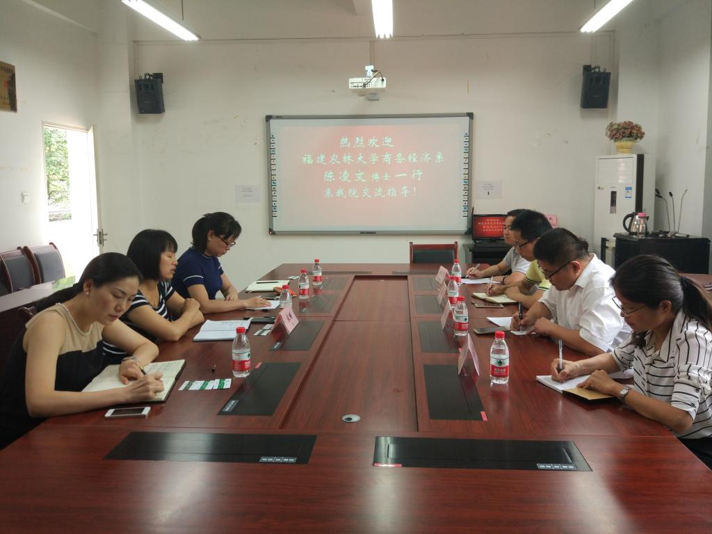 7月13日上午,福建农林大学安溪茶学院商务经济系陈凌文博士一行来yl官网指导交流。会议由主管教学副院长宋瑛主持,贸易经济系主任杨海丽老师以及学院教务办参会。