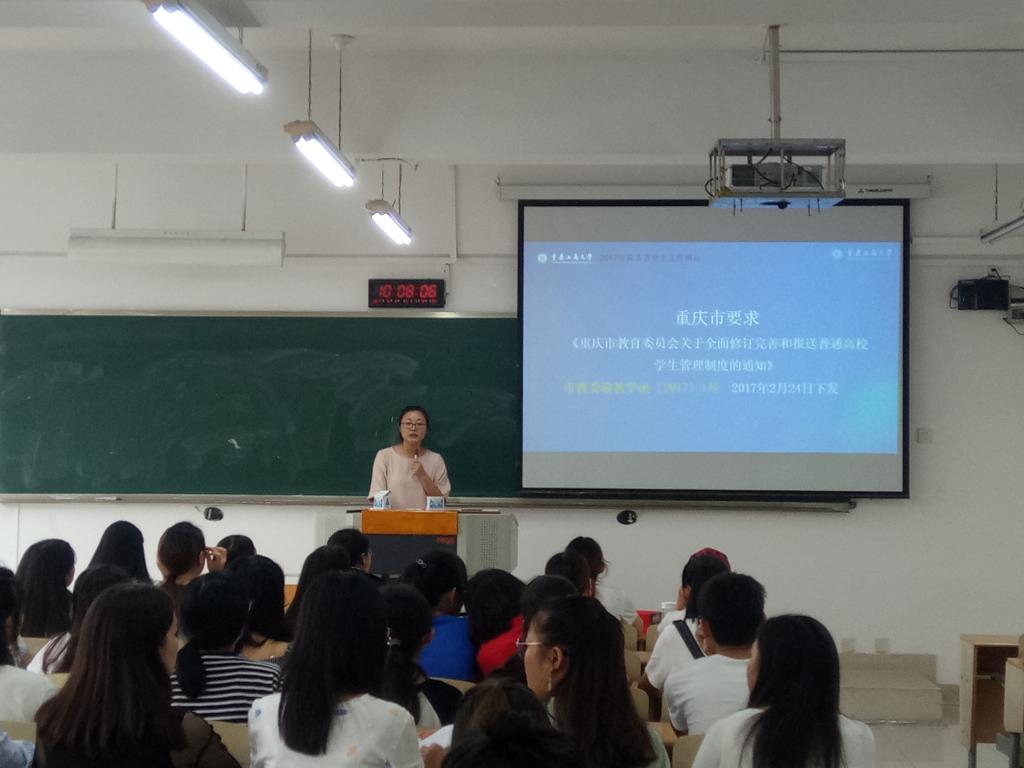 9月11日下午,yl34511线路中心召集全体辅导员在学院会议室认真学习了学校最新修订学生管理有关规定,学院分党委书记王小玲参会,培训会由学院分党委于频副书记讲授。于频副书记给大家讲解了新修订的学生管理规定的构架结构,比较了新规和旧规的变化,逐一带领大家学习了变化之处,并逐一解读。学习的新规包括《重庆工商大学学生管理规定》、《重庆工商大学本科学生日常行为更规范》、《重庆工商大学学生校园网络行为管理办法》、《重庆工商大学学生违纪处分办法》等在内的“1+4+N”的所有规章制度。王小玲书记要求各位辅导员,要进一步认真研读每一篇规章制度,深入学习,确保在学生工作过程中要做到依章依规,遵章守纪,合乎程序。