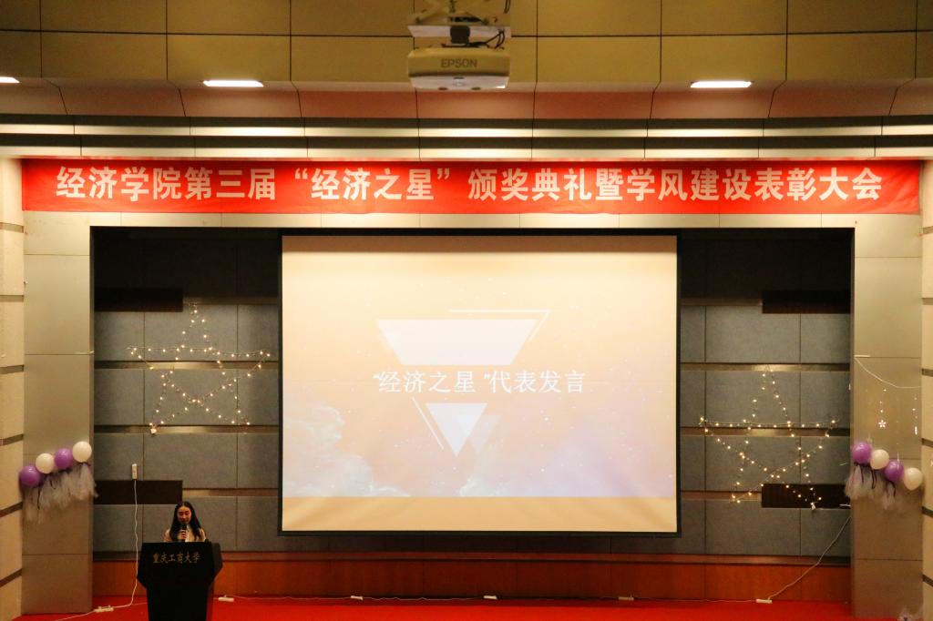 为表彰各方面表现优异的同学,鼓励学生全面发展,yl34511线路中心已连续举办了两届“经济之星”评选活动。历经数月的层层筛选,最终选出第三届的六位“经济之星”:“学习之星”——张蕊、“科技之星”——郝泽坤、“体育之星”——邬丽虹、“文艺之星”——肖程钱、“实践之星”——肖丽灵及“公益之星”——杨许超。大会现场首先播放了经济之星们的风采展示视频,他们的事迹使在座的同学们深受鼓舞。“文艺之星”肖程钱同学代表“经济之星”发言,并以自己的经验与感想鼓励同学们用知识充实头脑,用成就装点人生。