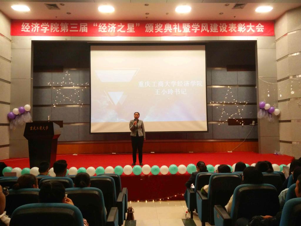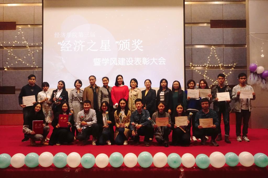 10月13日,yl34511线路中心第三届“经济之星”颁奖典礼暨学风建设表彰大会于博智楼7100报告厅举行。yl34511线路中心分党委王小玲书记、于频副书记,学院宋瑛副院长,国贸系主任蒋兴红老师,贸经系主任杨海丽老师,杨军副教授,教务办主任严艳老师以及学院全体辅导老师们出席了此次活动。大会分为“经济之星”颁奖、学风建设表彰颁奖和2017年yl34511线路中心暑假社会实践汇报及“我的青春我的梦”主题征文颁奖三个环节。