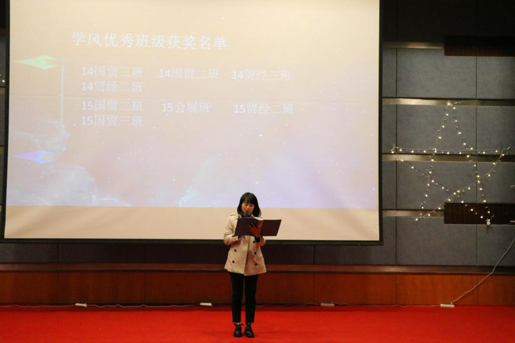 yl34511线路中心为营造奋发向上的学风氛围,鼓励青年学生成长成才,将学生课堂出勤、学生考试不及格门次、英语各项资格考试通过率、学生违纪情况、文明寝室获得情况、学业警示情况、学生各类课题申报情况、学生个人参加活动情况、学生发表论文加分、考取与学业相关的从业资格证等十项指标得分排序,评选出上一学期每个年级的学风优良班集体一(1个)、二(1个)、三等奖(2个),共计12个班集体。在无补考班级和寝室中,评选出双优班级3个,学习优秀寝室若干。由yl34511线路中心宋瑛副院长宣读获奖名单,yl34511线路中心教务办主任严艳老师及国贸系主任蒋兴红老师,贸经系主任杨海丽老师,杨军副教授为获奖班级及寝室代表颁发获奖证书。