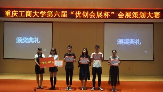 优创会展公司王渝红总经理为一等奖学生颁奖