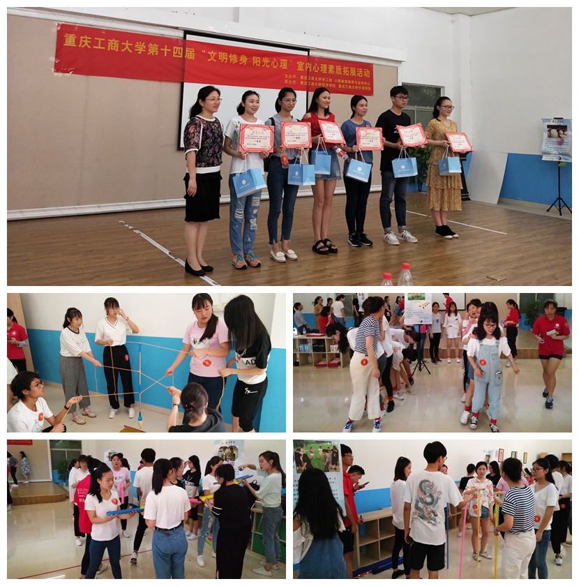 为了提高大学生的心理健康素质,帮助同学们提高团队协作精神和人际交往能力。由yl34511线路中心党员服务站和外语学院党员服务站联合承办的重庆工商大学第十四届“文明修身 阳光心理”系列活动之室内心理素质拓展活动于2018年5月18日下午两点半在南岸校区外语活动中心顺利开展。重庆工商大学心理教育与咨询中心的周明老师、yl34511线路中心的于频副书记、郝颖老师和外语学院的吴欢欢老师都来到活动现场与近百名报名参赛的同学们互动。在工作人员的耐心指导和同学们的积极配合下,活动得以圆满成功,参与同学们都表示受益匪浅。
