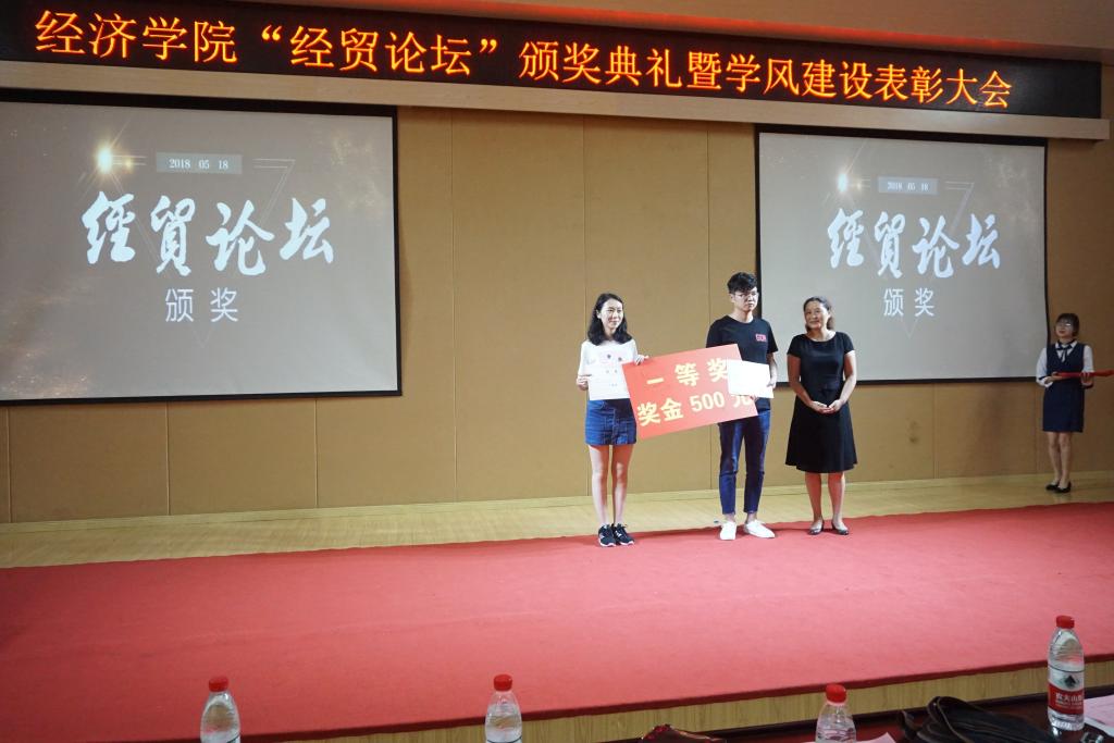 5月18日下午2点,第十一届“经贸论坛”颁奖暨学风建设表彰大会在田家炳209顺利举行。出席本次活动的嘉宾为yl34511线路中心分党委王小玲书记,分党委于频副书记,院长助理黄潇老师,经济学系主任李然老师,贸易经济系主任杨海丽老师,国贸系王美英老师,会展系杨军老师及全体辅导员老师。