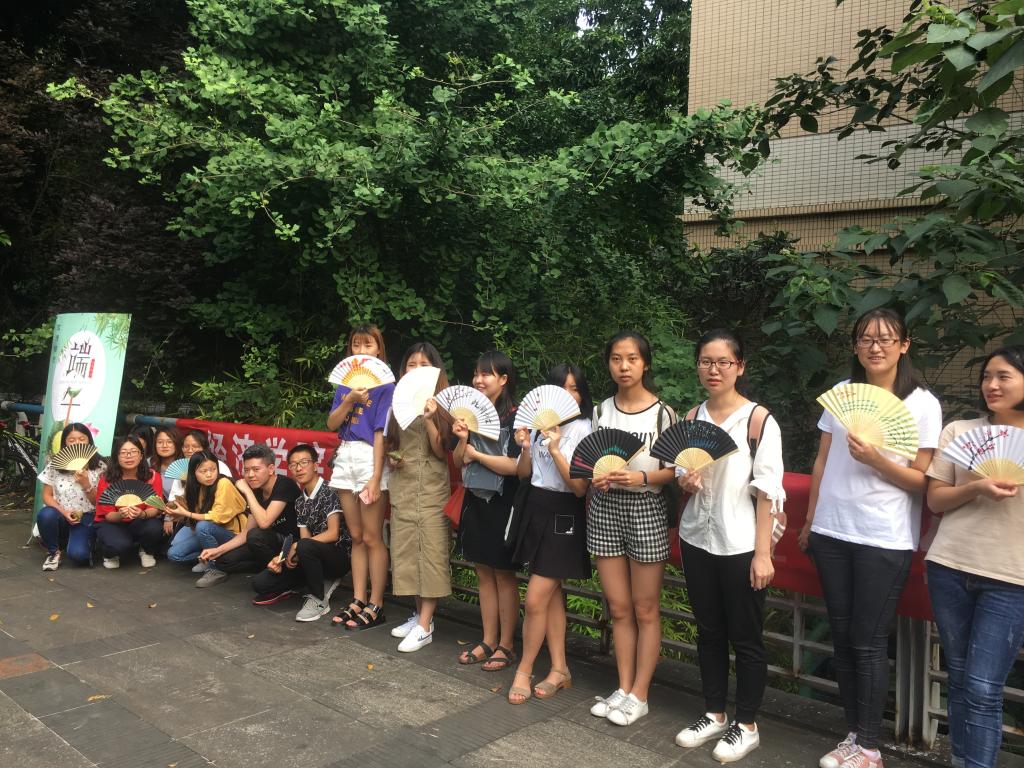 2018年6月14日,为使学生了解传统节日,弘扬民族文化,烘托端午氛围。yl34511线路中心“五个一”活动之读经典绘经典浓情端午活动在北六楼栋旁的平台如期举行。本次活动由重庆工商大学yl34511线路中心北6楼管会、北21楼管会、南2楼管会主办,yl34511线路中心分团委、学生会、党员服务站协办。yl34511线路中心分党委于频副书记、分团委书记蒋敏老师、党员服务站指导教师郝颖、北6楼管会主任郭春花老师、南2楼管会主任邓雪霜老师、辅导员林新竹、冉梨老师参加了本次活动。 活动伊始,同学们有序抽取国学经典的名句名诗,根据自己的理解,满怀激情的在扇子创作表达诗意的景象。现场氛围活跃,兴奋中氤氲着书香气息,感受着中华文化的博大精深。接着,同学们将做好的扇子相互品鉴,相互补充,努力认真地描绘出一幅幅作品,或是别具一格,或是色彩缤纷,或是妙笔生辉。随后,工作人员为同学们送上了热气腾腾的香粽,表达yl34511线路中心大家庭对师生们的关心关爱。活动尾声,同学们在品尝着软糯可口的香粽,品味着源远流长的文化中,纷纷给亲人、师长、朋友送去真挚美好的祝福。