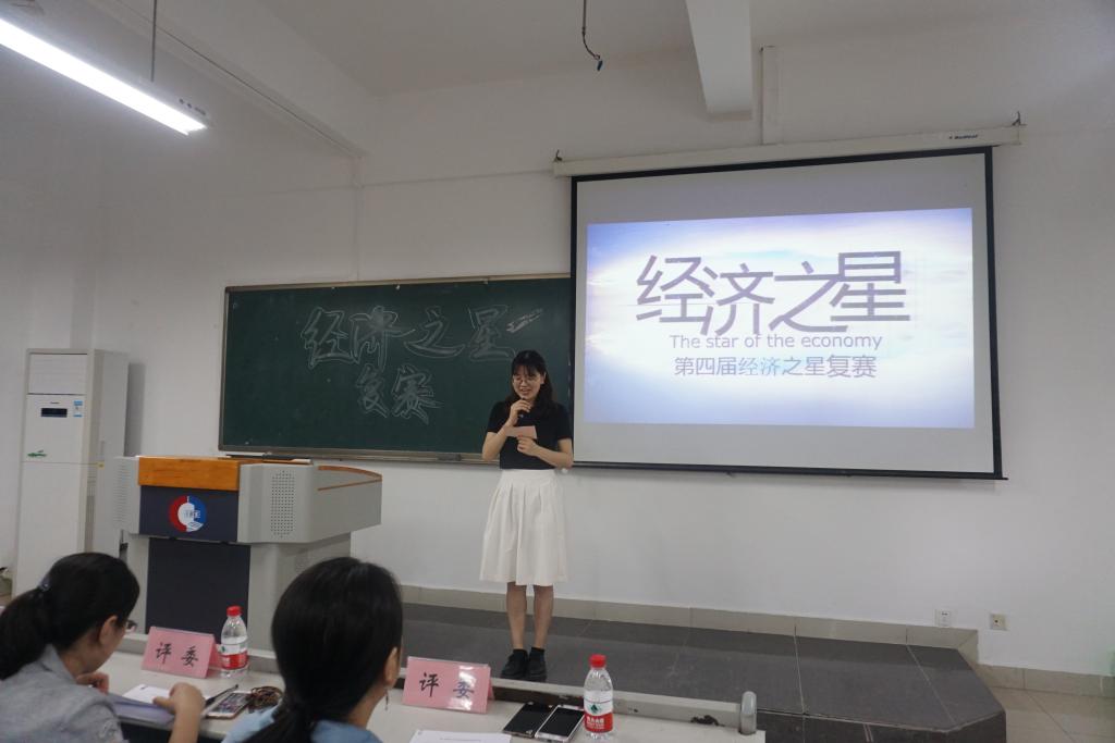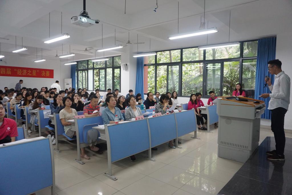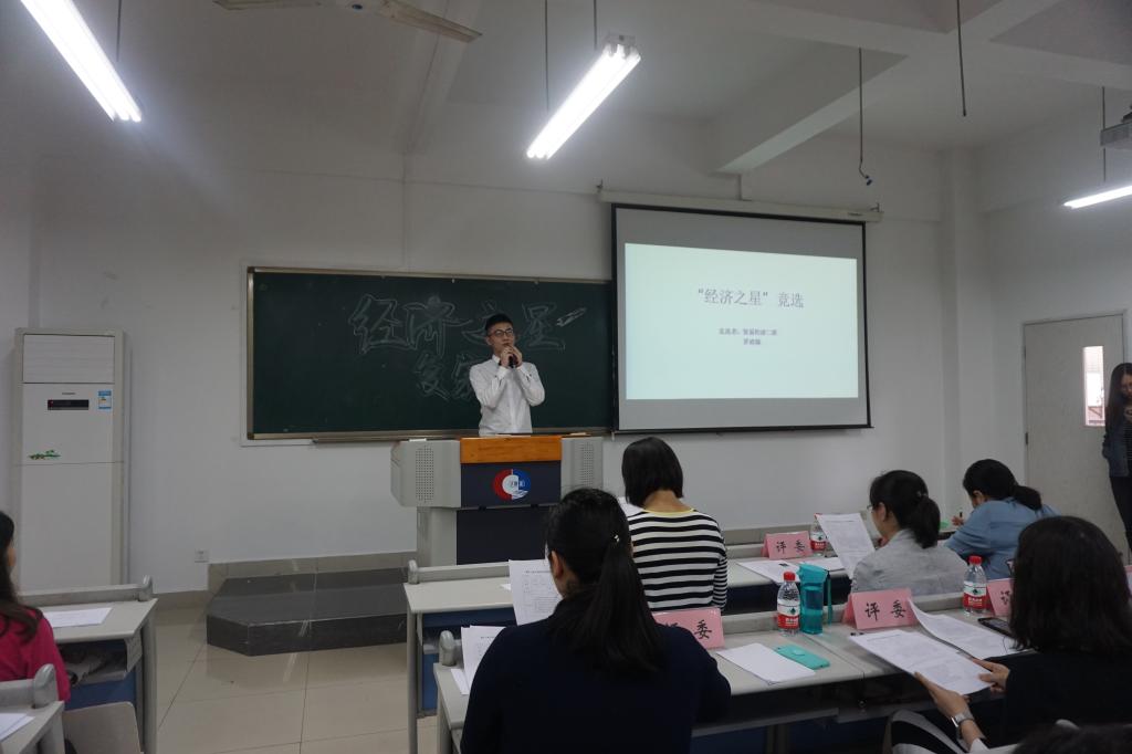 5月初,通过同学自荐、老师同学推荐等方式,确定候选名单,学院邀请教师代表对候选同学材料进行评选,最终确定12名同学进入决赛答辩。5月25日,第四届“经济之星”复赛在田家炳408举办,yl34511线路中心分党委于频副书记,贸经系主任杨海丽老师,国贸系王美英老师,经济系何泱泱老师,学团办主任杨华俊老师,分团委书记蒋敏老师及学团办辅导员老师们担任此次活动的专业评审,同时来自yl34511线路中心14、15级各班的大众评审共同参与了此次评选。决赛分为两个环节:PPT展示和现场答辩。PPT展示阶段,参加复赛的选手们对自己的实践经历、获奖情况等进行了展示。“学习之星”优异的成绩单、“实践之星”丰富的实践经验、“科技之星”充满创新意识的成果、“文艺之星”精彩的文艺展示、“公益之星”感人的志愿服务经历、“体育之星”曾获的众多比赛名次,都让在座的同学们深受鼓舞。现场答辩阶段,由评委老师们随机向选手进行提问,选手们的回答让现场响起阵阵掌声。