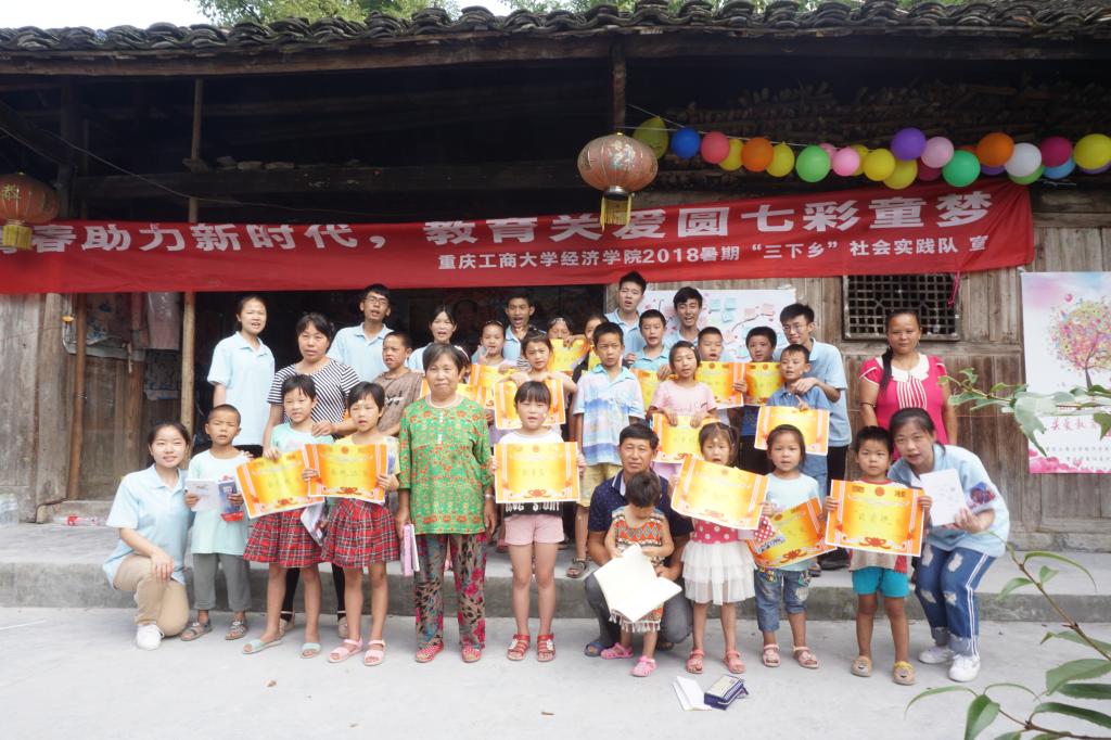 2018年暑期,重庆工商大学yl34511线路中心三下乡社会实践队以“温暖、陪伴”为主基调,组织了一场感人肺腑的汇报演出。本次演出实践队员们邀请到了村、乡、镇各级领导、yl34511线路中心分党委副书记于频以及孩子们的家长共同参与。