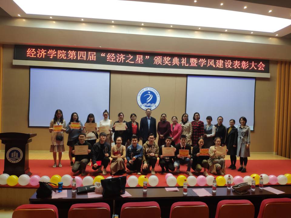 10月12日下午,yl34511线路中心第四届 “经济之星”颁奖典礼暨学风建设表彰大会在田家炳209报告厅隆重举行。yl34511线路中心党委王小玲书记、于频副书记,学院“巴渝学者”谢新教授、国贸系主任蒋兴红老师、贸经系主任杨海丽老师、会展系主任林黎老师、经济学系何泱泱老师,教务办严艳老师及学团办全体辅导员老师们出席了本次表彰大会。