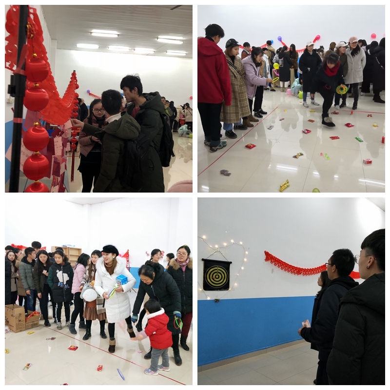 18点活动准时开始,主持人马燕在进行了简短的介绍后,邀请学院王小玲书记为活动致辞。王书记首先简要介绍了2018年学院取得的各项成绩,希望大家在来年能在“相亲相爱一家人”的氛围中再创佳绩其;次为yl34511线路中心全体师生送上了新年祝福,最后大家能在游园会上玩得开心、玩得尽兴。接着,游园会正式开始。此次游园会设置了猜灯谜、投篮、飞镖、你比我猜、反动作、占领阵地、做灯笼、投壶、套圈等10个游戏,只要通过其中6个游戏就可以参与抽奖;奖项设置了7个等级,百分百的中奖率。早早就来等候的同学们,迫不及待地涌向各个游戏,开始体验。猜灯谜前的同学们,对着一个个灯谜绞尽脑汁,实在想不出来时,个人游戏就变成了多人项目,大家共同进行头脑风暴,当答案得到工作人员的肯定时,一个个脸上都是慢慢的成就感。投篮和飞镖前也聚集了很多同学,男孩子更多,都在大展身手。你比我猜,两人一组,各种逗趣的肢体语言和脑洞大开的答案让大家笑作一团。反动作游戏则极其考验方向感,不少同学都在这里败了阵。占领阵地,四人一组,大家想尽各种办法在那窄窄的报纸上站稳身形。做灯笼汇聚了超多心灵手巧的小姐姐,一个个精致可爱的灯笼摆在那,新年的氛围立马变浓了。甩便利贴前每一个同学都在竭尽全力的跳啊抖啊,投壶的同学则沉心静气瞄准。最热闹的就是套圈了,大家都排着长队等候,每一个同学都在为自己喜欢的零食努力着。没过半个小时,抽奖处就有同学了,整个活动中心无处不是欢声笑语,青春洋溢。20点30分,活动结束。