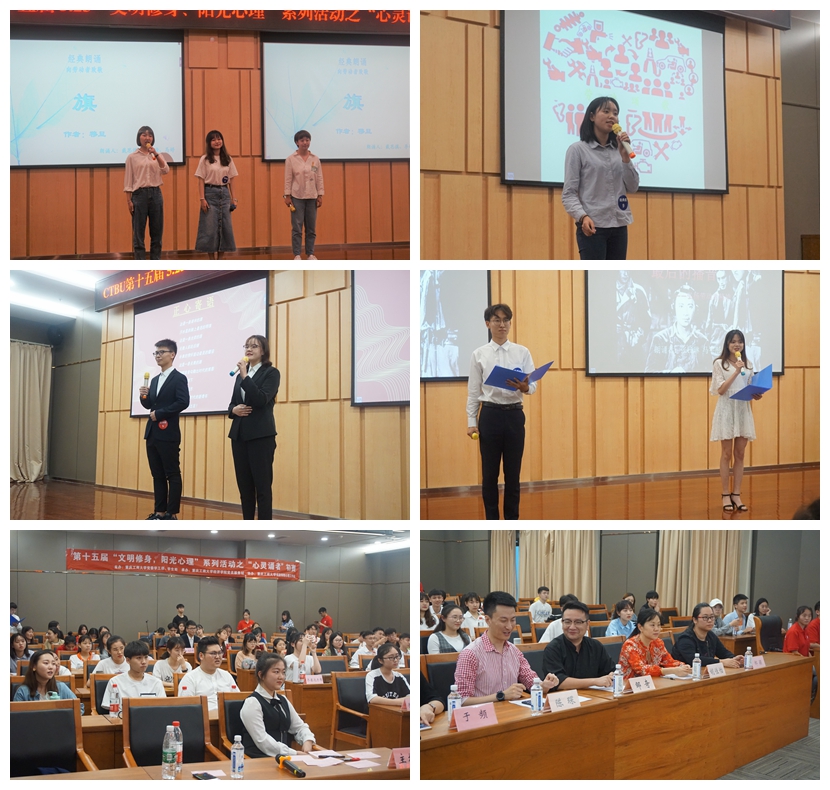 为了加强yl官网学生心理健康教育工作,营造健康良好的校园文化氛围,由党委学工部、学生处主办,yl34511线路中心党员服务站承办和yl34511线路中心心理工作站协办的第十五届“文明修身,阳光心理”系列活动之“心灵诵者”初赛于2019年5月10日晚上在新图书馆第一会议室成功举办。此次活动的主题为“汲取劳动智慧,吟诵劳动精神,做心灵的强者”,邀请到学校大学生心理健康教育与咨询中心胡佳怡副主任、通识学院邹奇副书记、校团委陈琛老师担任活动评委,另外yl34511线路中心于频副书记和郝颖老师作为嘉宾也到场参与了此次活动。