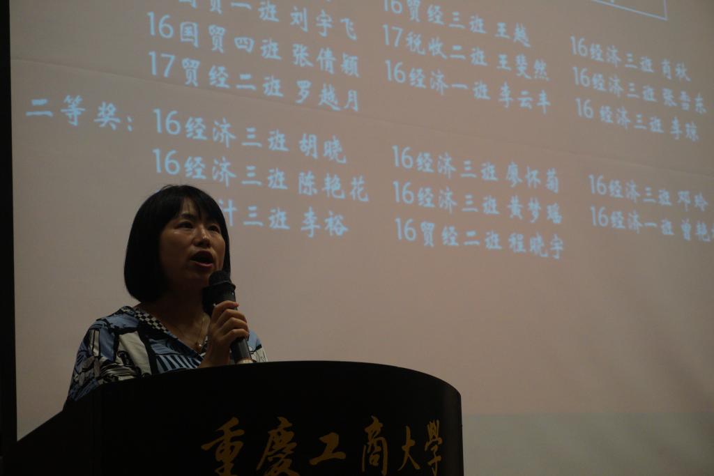 大会在庄严的校歌合唱声中开始。活动共分为四个环节,分别是第十二届“经贸论坛”颁奖;学风建设工作表彰;优秀团支部表彰;“春禾”奖学金颁奖和国贸技能大赛发布会展示。李敬院长为本次颁奖典礼致辞,希望同学们在学习中应具备的三种精神:第一,科研精神——认真学习课内课外知识,勇于实践、勤于思考、敢于探索。第二,自律精神——遵纪守法、严于律己,秉承诚信、严谨的优良作风。第三,奋斗精神——不畏困难,不断超越自我,注重学习能力和综合素质的提高。