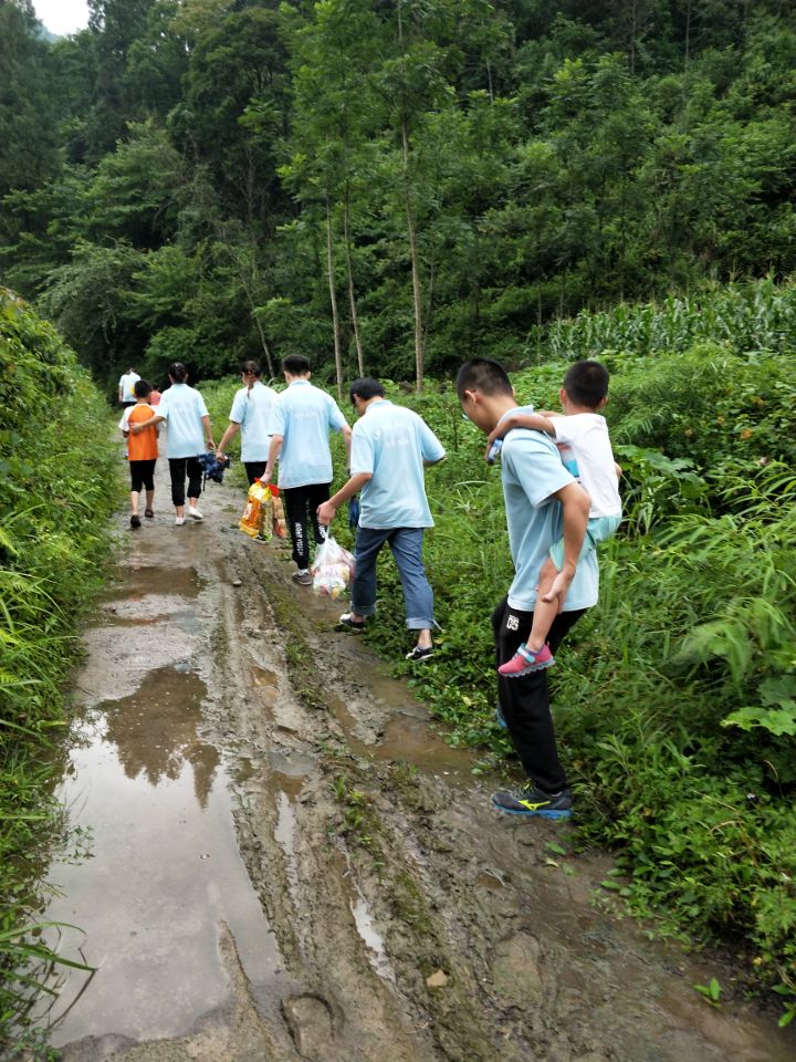 为了全面了解孩子们的成长环境,实践队员送孩子们回家。下雨路面积水,泥泞的小路上实践队员与孩子们手拉着手,走进孩子们的简陋的家。孩子家长的热情与淳朴,孩子们的懂事与纯真,深深地打动了每一个人的心。通过对家庭情况进行调查,实践队员了解到孩子们每天上学的不容易,更加坚定了大家的信念:关爱留守儿童,将扶贫进行到底。