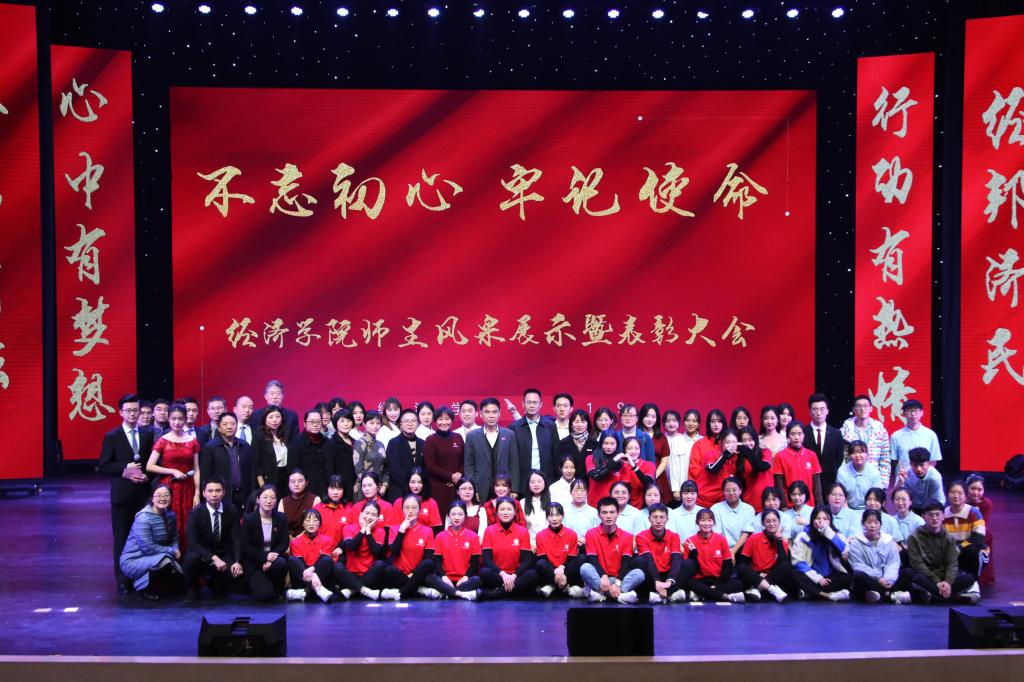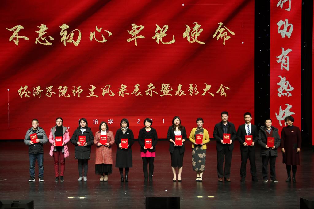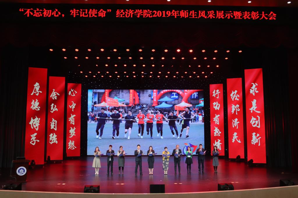 在一首振奋激昂的《少年中国》歌声中,大会拉开帷幕。yl34511线路中心院长李敬作全年工作总结,从教学、科研、学科建设、学团工作等方面回顾了2019年学院取得的成绩。yl34511线路中心分党委书记王小玲宣读市级、校级、院级优秀党员、党务工作者名单,并请李志雄书记、孙芳城校长为获奖师生颁奖。之后,经济系主任李然代表全体教师上台发言。大会还表彰了2019年度yl34511线路中心教学标兵、教学新星、学科竞赛优秀指导教师、教学竞赛先进个人及科研先进工作者,并展示了经济之星、校长荣誉奖、第十一届感动校园人物等学生风采,在现场观众的阵阵掌声中,表彰会迎来了一波又一波的高潮。