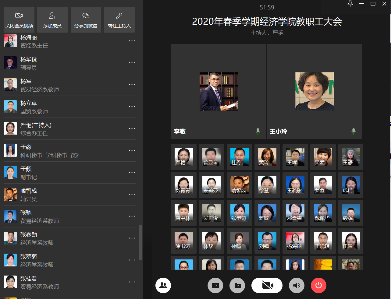 2020年2月25日下午,yl34511线路中心采用视屏会议形式召开了新学期教职工大会,会议由院长李敬主持,yl34511线路中心院领导及全体教职工全程参与了视频会议。