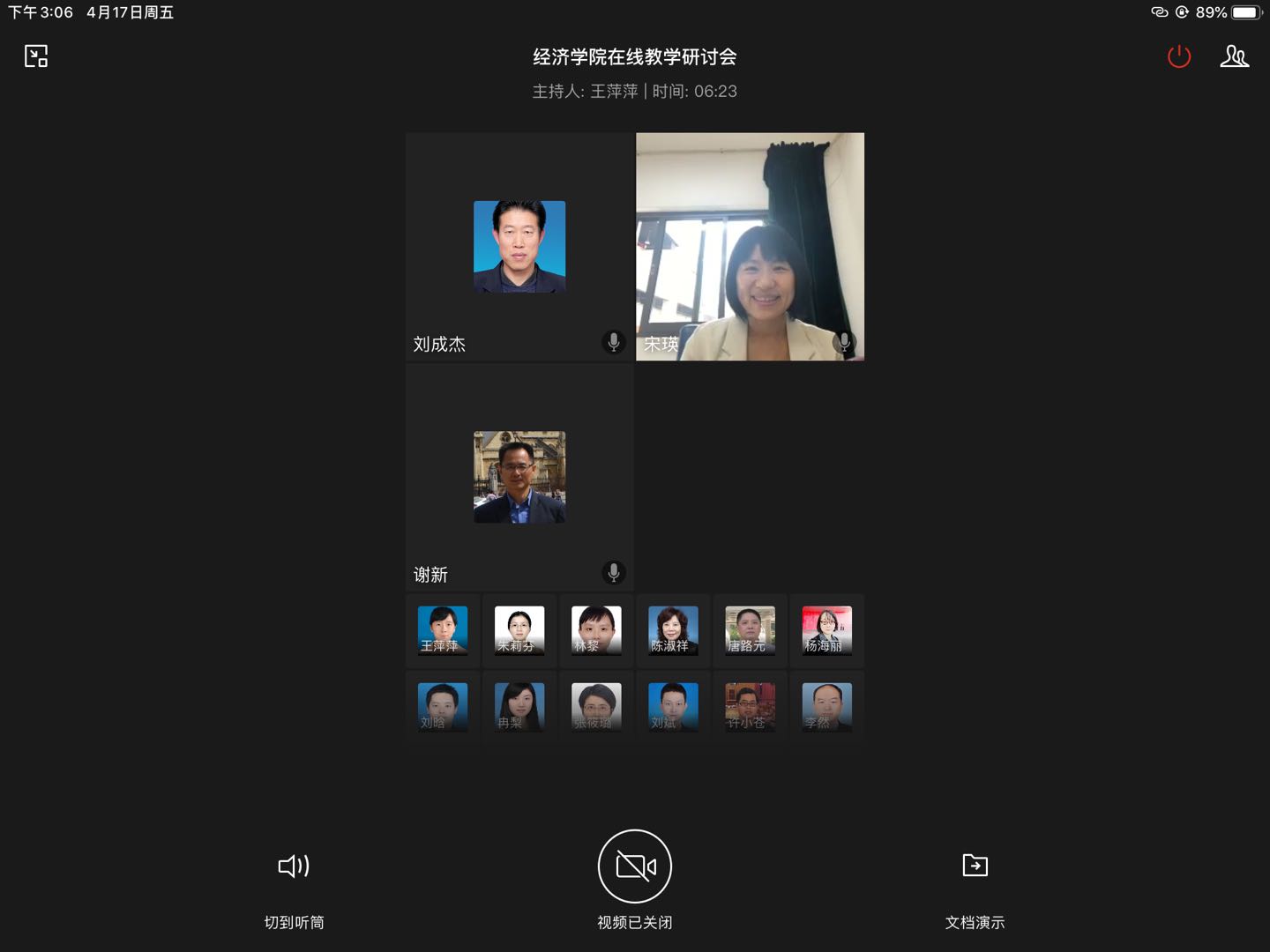 在第一阶段的讨论中,老师们一致认为应围绕知识-素质-能力进行课程建设,以提高教学质量为目的,思考在线教学和课堂教学方式的运用与衔接。学院教指委副主任刘成杰教授以西方经济学课程为例,主张用经济抽象、分析范式、数据素养以及综合素养等五方面进行理论教学,在课程范式和知识框架上下功夫。政治经济学课程组组长唐路元教授则认为在线教学的课程内容更要加强理论性、逻辑性和知识性,每句话都要讲透彻,引导学生理解深层次的理论知识,不然就会流于形式,照本宣科。另一方面,在线教学的好的工具与方法,如在线教学辅助平台、在线开方课程、企业微信教学班、混合教学方式等,应在未来课堂教学中贯彻并长期坚持使用。“贸易经济学”课程组长张驰博士提出以翻转课堂的模式,将课程内容作任务分解,让学生不断“通关”学习,利用“雨课堂”实现课堂中的在线讨论,提高学生的学习兴趣性。