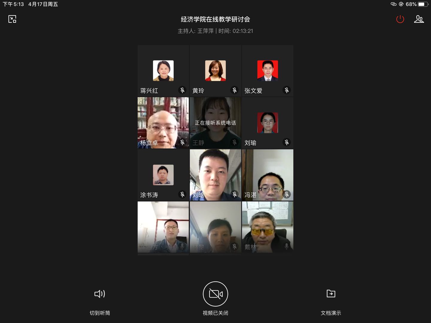 会议的第二阶段是探讨如何学院线上线下混合金课的培育。首先明确了学院拟前期探索与培育的9门混合金课,分别是“微观经济学”、 “政治经济学”、 “世界贸易组织”、 “贸易经济学”、“零售学”、 “商品学”、 “国际贸易实务”、 “国际商务谈判” 、“会展概论”。对于线上线下混合“金课”如何建设的问题,学院教指委副主任委员、“世界贸易组织”课程组长谢新教授认为打造“金课”很重要,在线教学的全面开展是大家集中智慧的体现,特别强调要充分利用线上的资源,对课程内容继续深化与完善,把更多更好的工具引入到教学中。校督导、“会展概论”课程组长杨军副教授提出了“双线结合”和“四位一体”,“双线结合”即线上线下结合,“四位一体”是指线下课堂面授、加强实践认知、丰富在线资源及充分利用直播。经济系副主任、“微观经济学”课程组长刘斌副教授就微观经济学混合金课建设提出了线上线下学时划分、试点先行还是全面推进的思考。国贸系主任、“国际贸易实务”课程组长蒋兴红副教授则认为对在线教学的教学设计、考勤方式、预习方式、作业布置要进行全面规范与改革。贸经系主任、“商品学”课程组长杨海丽副教授提出以线下为主、线上为辅的形式开展,加强课程难度,打造出有高度、有深度、趣味性强的混合金课。“国际商务谈判”课程组长戴林副教授分享了在线教学课程设计中增加场景式问题、实施开放式讨论、提高年轻人的接受程度方面的实践经验。