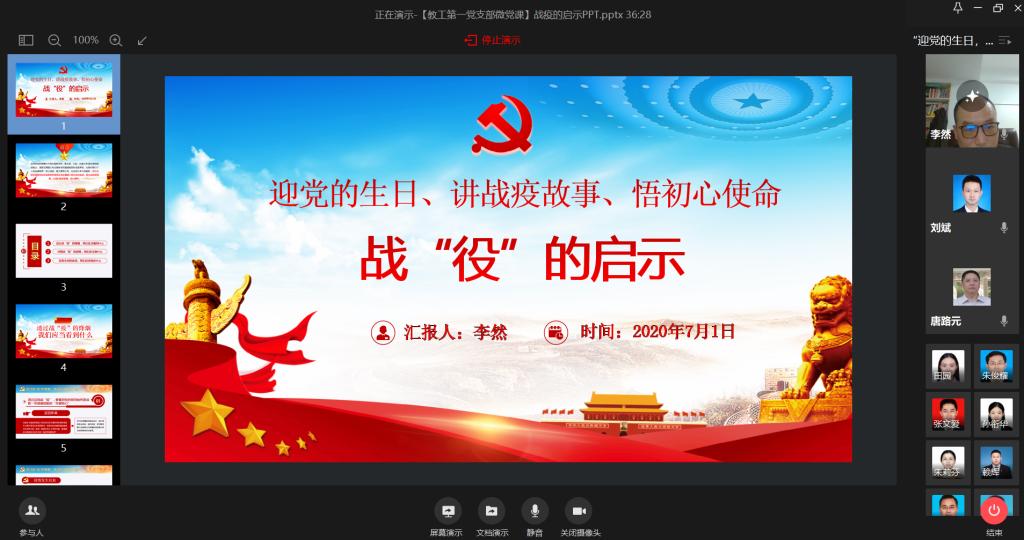 7月1日晚上19点1分,yl34511线路中心教工一支部借助企业微信平台开展了“迎党的生日、讲战疫故事、悟初心使命”线上组织生活会,会议由支部书记李然同志主持,全体支部党员参加。